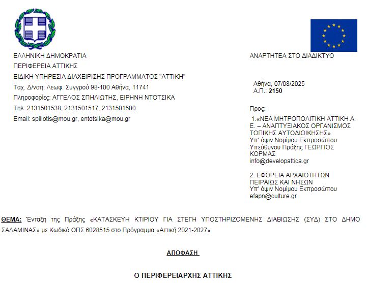 Με λίγα λόγια, η Σαλαμίνα έχει μπει δυναμικά και στον χάρτη των κοινωνικών υποδομών για ΑμεΑ, και η Περιφέρεια Αττικής (υπογράφει την απόφαση ο Νίκος Χαρδαλιάς) στέλνει μήνυμα ότι είναι δίπλα στον Δήμο.