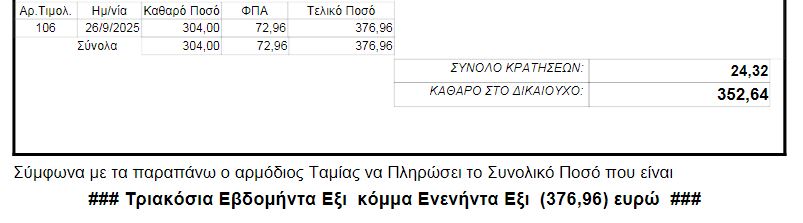 Να έρχεται στα χέρια σου μια εφημερίδα (φύλλο Σεπτεμβρίου 2025), να τη γυρίζεις στην σελίδα 13, να θαυμάζεις και… τσουπ να βλέπεις σήμερα στην ΔΙΑΥΓΕΙΑ (ώρα: 14:56:37) το τιμολόγιο αξίας 352,64 ευρώ για αυτή την καταχώρηση.