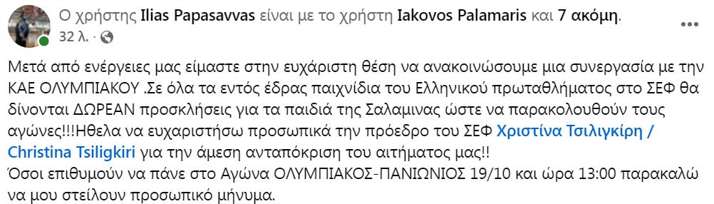 Σήμερα, έδωσε στο facebook ακόμα μια ενέργειά του, η οποία ξεπερνάει τα… σύνορα της Σαλαμίνας. Και δείχνει πόσο ενεργός είναι, τι γνωριμίες έχει, και τι πράττει.