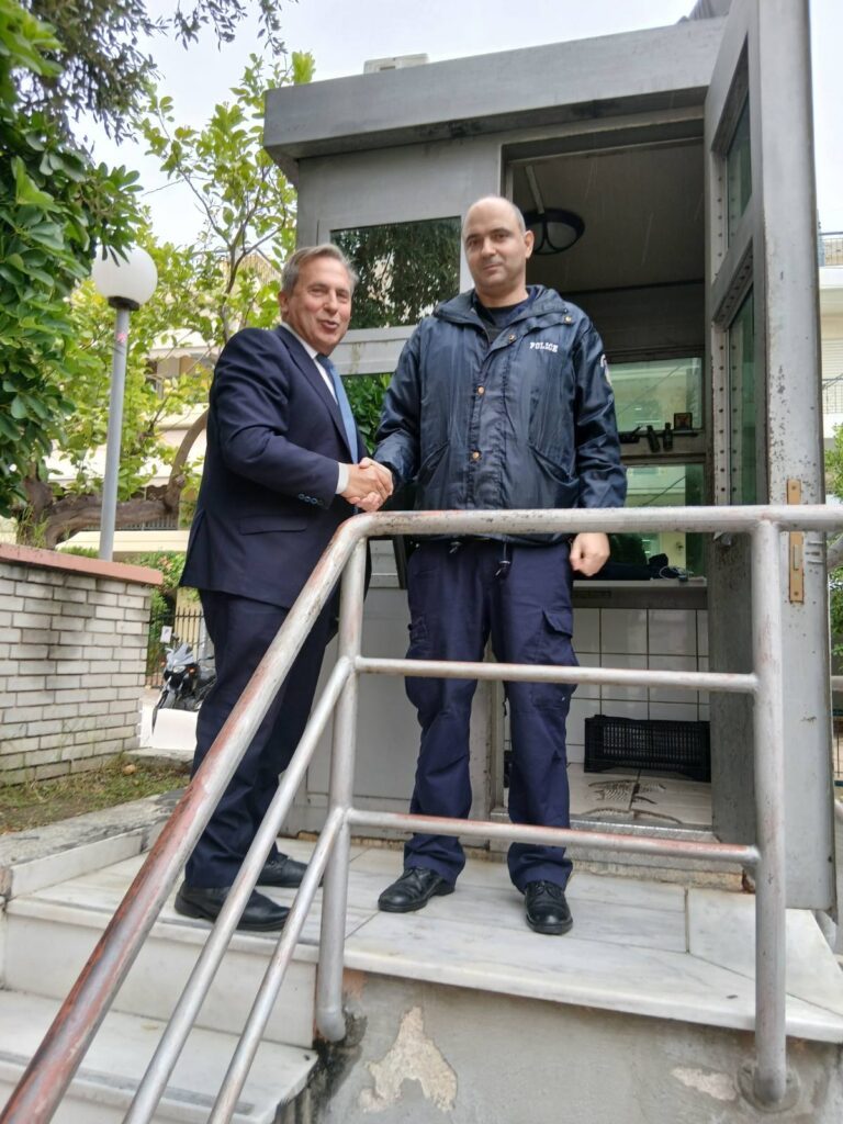 Αμέσως μετά, επισκέφθηκε τα αστυνομικά τμήματα Αγίου Δημητρίου και Αλίμου, στην εκλογική του περιφέρεια, όπου είχε εκτενή συζήτηση με αξιωματικούς και προσωπικό για τις ανάγκες και τις ελλείψεις της Υπηρεσίας — με δέσμευση να τις μεταφέρει στη Βουλή.