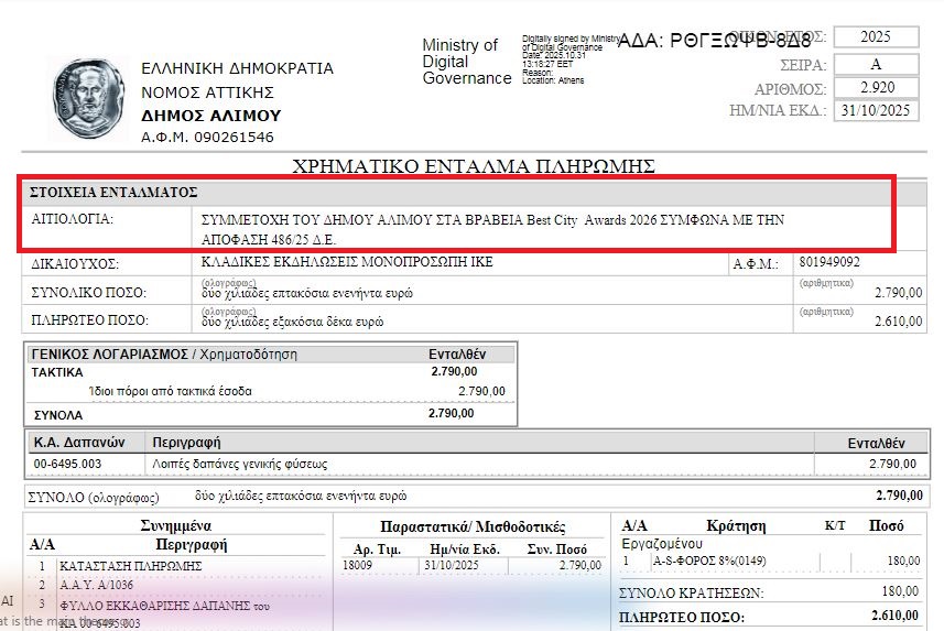 Η πρόσφατη βράβευση στα Best City Awards προκαλεί ερωτήματα για το πραγματικό κόστος της συμμετοχής και τις διαδικασίες που ακολουθήθηκαν.