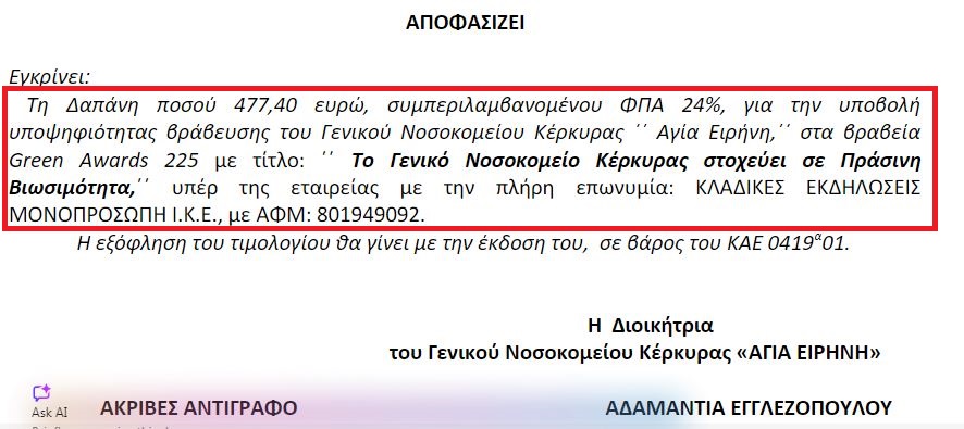Και επειδή έψαξα και για την… υποβολή υποψηφιότητας (σ.σ. δεν επιλέγονται, πηγαίνουν… κατευθείαν στην πηγή), βρήκα και αυτή την απόφαση από το νοσοκομείο Κέρκυρας για να καταλάβετε τι συμβαίνει.