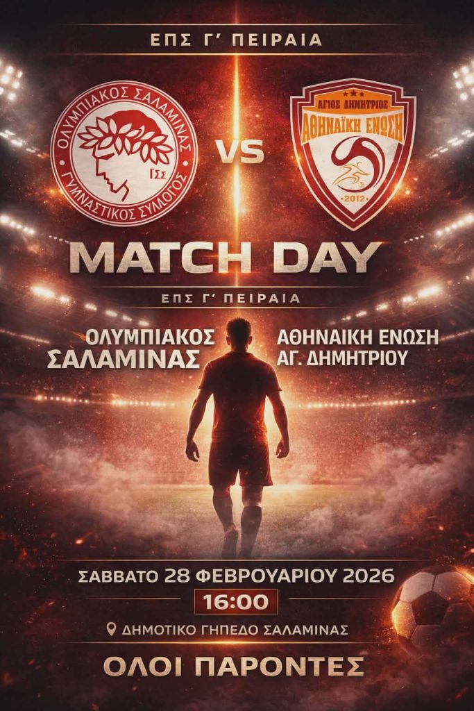 Με την άνοδο εξασφαλισμένη, ο επόμενος και τελικός στόχος είναι η μαθηματική κατάκτηση της 1ης θέσης. Το Σάββατο 28 Φεβρουαρίου 2026 στις 16:00, το Δημοτικό Γήπεδο Σαλαμίνας ετοιμάζεται να «φορέσει» τα γιορτινά του. Ο Ολυμπιακός Σαλαμίνας υποδέχεται την Αθηναϊκή Ένωση Αγ. Δημητρίου, σε έναν αγώνα που με μία νίκη κλειδώνει και τυπικά την κούπα του πρωταθλητή.
